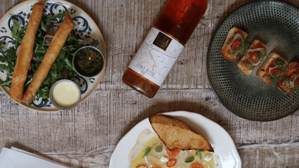סלקים צלויים, רוקפור, אורוגולה, נענע, אגוזי לוז, ויניגרט בלסמי